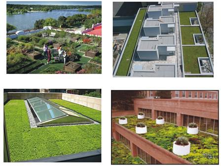 屋頂綠化帶給人們的視覺效果是綠草如茵、花木扶疏、四季青翠、清新宜人的。其綠化作用也是多方面的:它可使屋頂住宅的室內溫度得到改善,屋面的隔熱保溫效果明顯提高;保護建筑物免遭高溫、紫外線等的損害,有利于延長其壽命;屋頂綠化還可凈化空氣,調節城市氣候,緩解熱島效應等。無庸置疑對于有建筑“第五立面”之稱的屋頂進行綠化,是城市三維立體綠化的重要部分,也是城市環境景觀的一大飛躍。